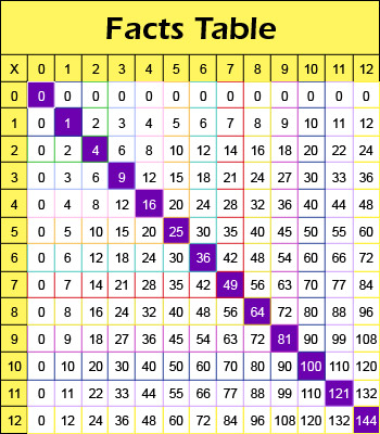 Being able to multiply with speed and accuracy through memorization of the basic multiplication facts will make the multiplication process easier. Below is a multiplication chart of basic multiplication facts.