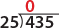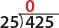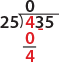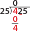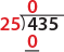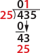 25 × 0 = 0 The answer from the first operation is multiplied by the divisor. The result is placed under the number divided into.