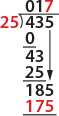 175 ÷ 25 = 7 remainder 0 Divide this number by the divisor.
